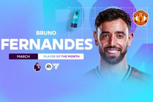 4场2球4助!官方:B费当选英超3月最佳球员 个人第6次当选追平C罗