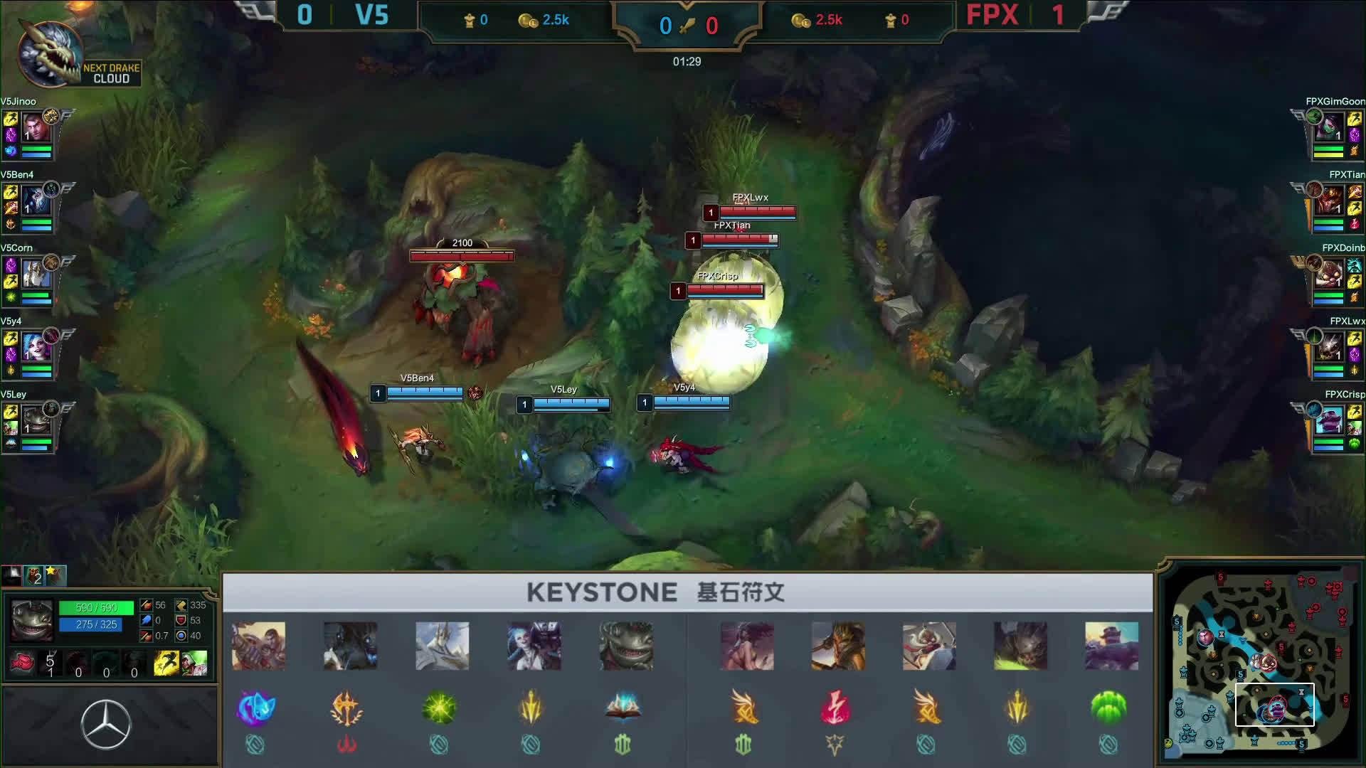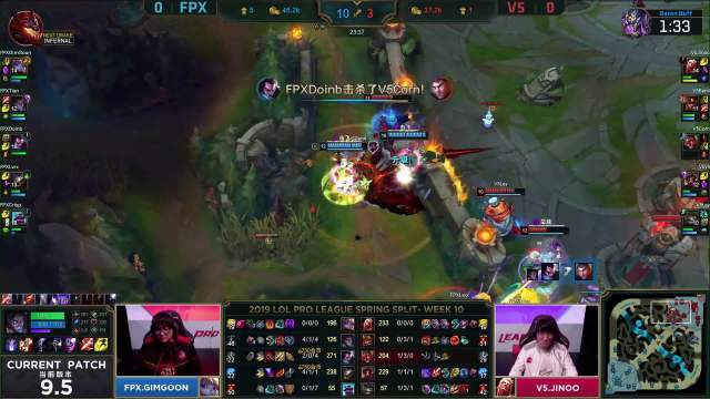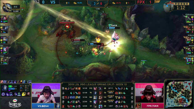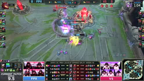 [微博视频] 第二局 V5中路率先开团,FPX人员支援赶到反杀V5三人