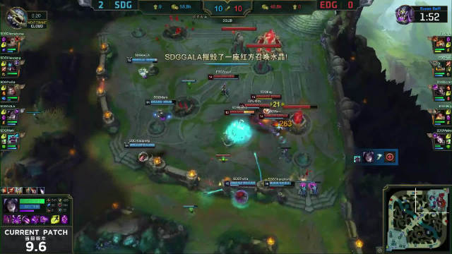 [微博视频] 第一局 EDG击退了SDG的大龙进攻,但三路水晶均被摧毁