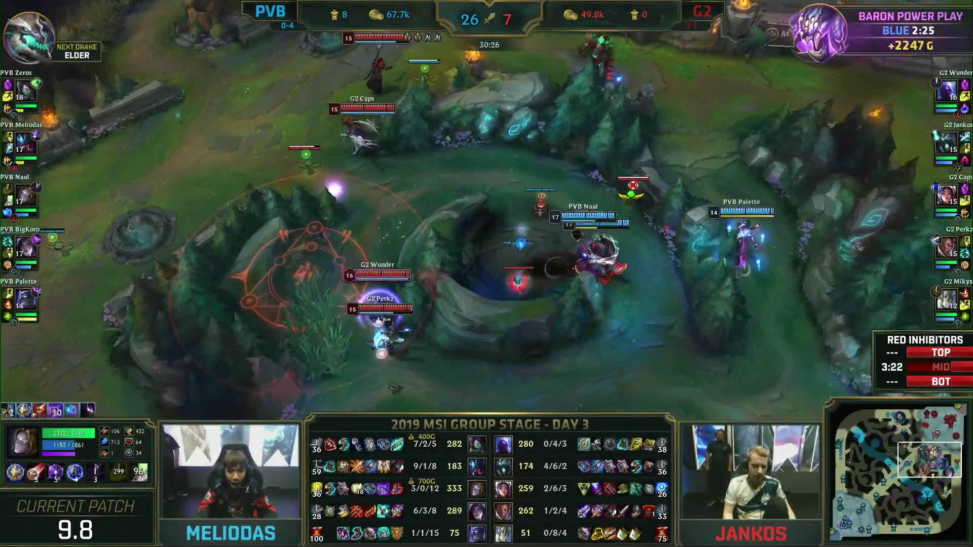 [微博视频] PVB再度赢下团战,中路摧毁G2水晶,随后再度拿下大龙。