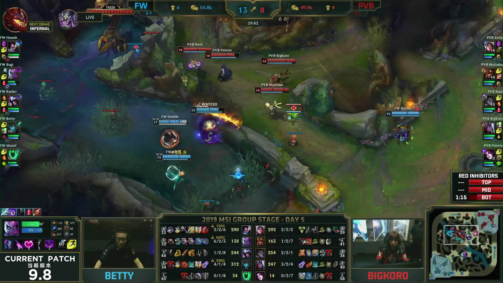 [微博视频] PVB冒进的开大龙被FW抓住机会击杀野辅,随后FW接手拿下了这一条大龙!