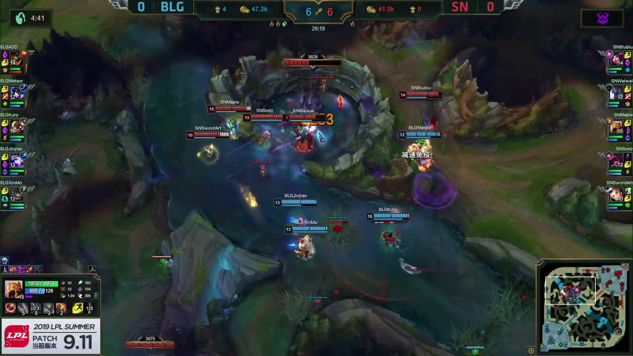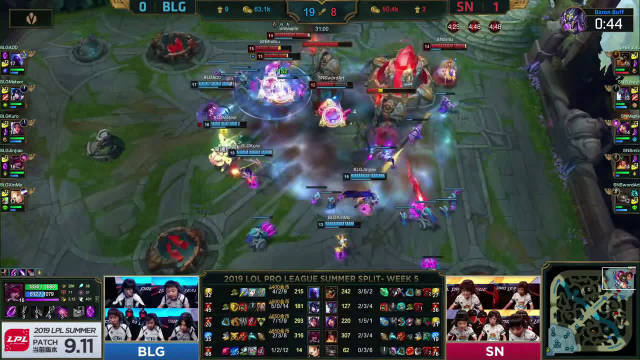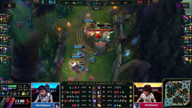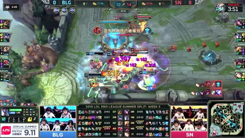 [微博视频] 第一局 SN强行RUSH掉男爵,BLG通过长时间的追击战打出0换2
