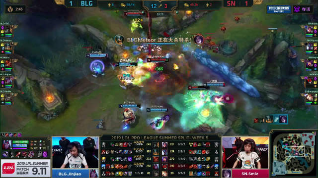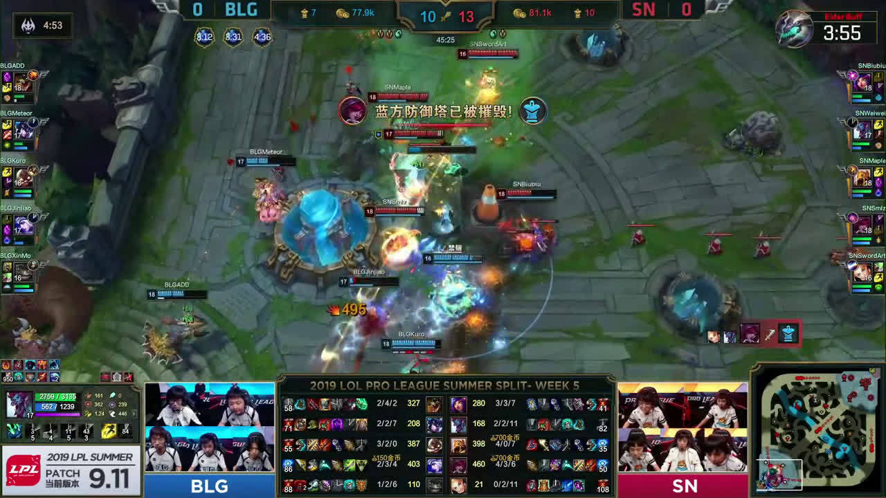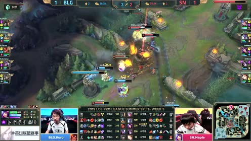 [微博视频] 第一局 拉克丝的护盾让SN坚不可摧,SN高地开团击杀BLG四人后成功翻盘