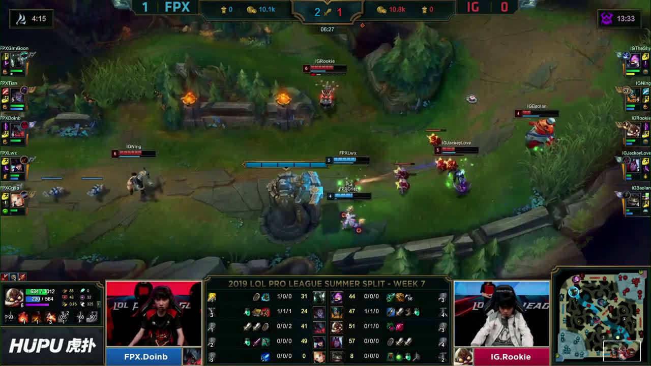 [腾讯视频] 第一局全场集锦 Doinb雷电法王豪取三杀 FPX翻盘先下一城