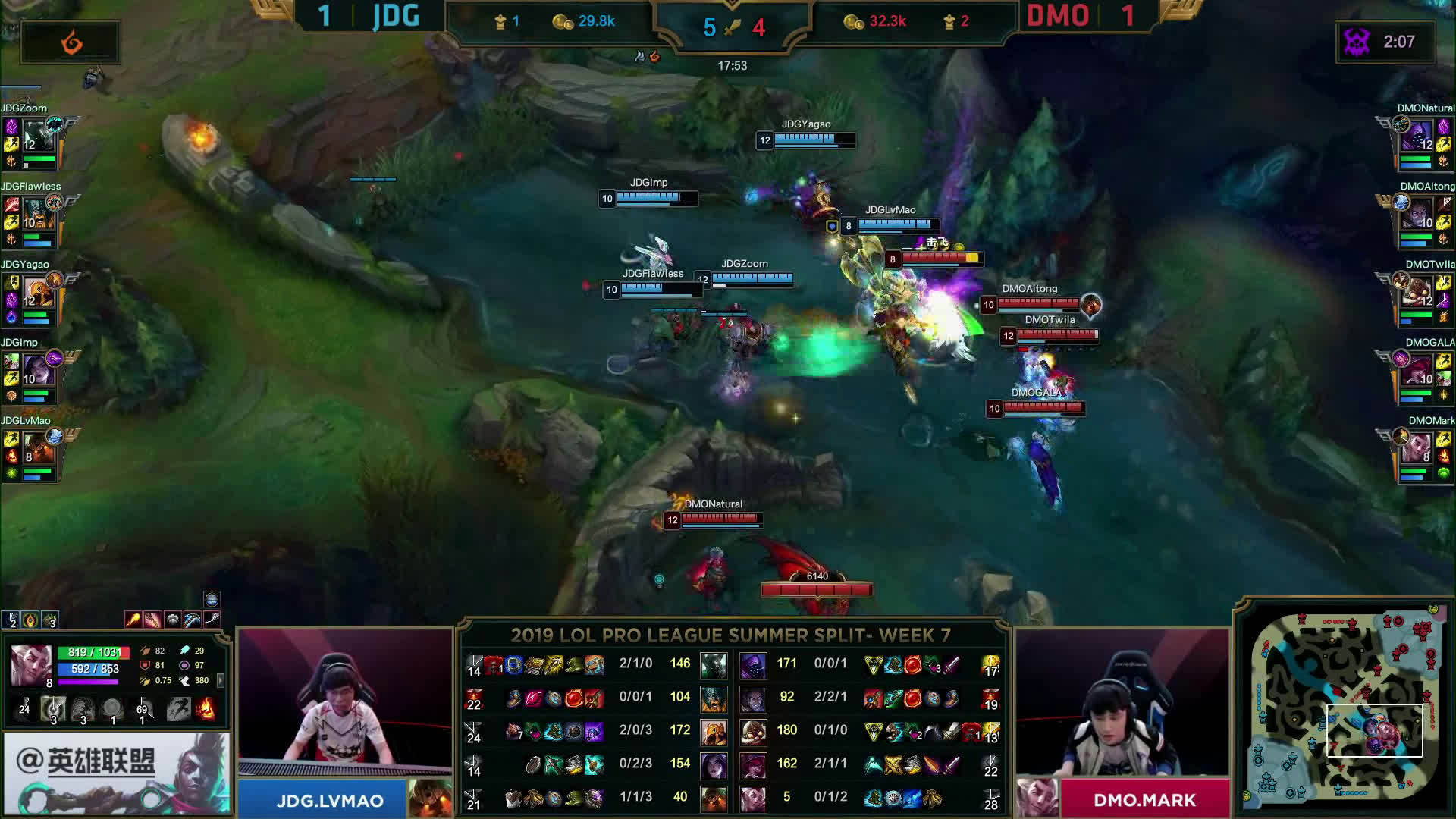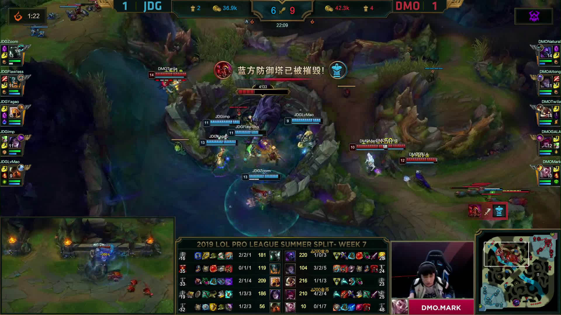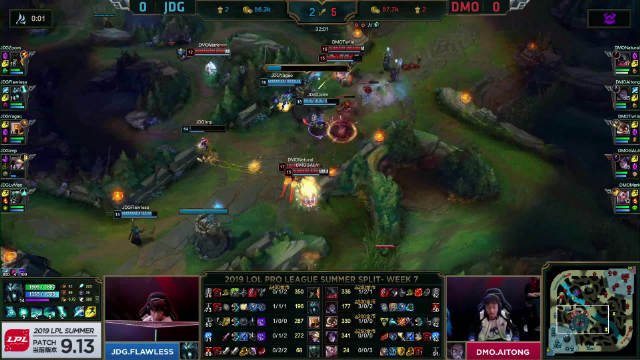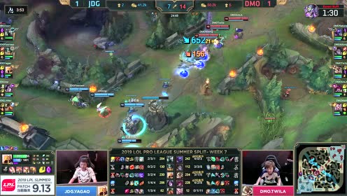 [微博视频] 第一局 DMO在中路打出完美团,0换5团灭JDG后赢下比赛