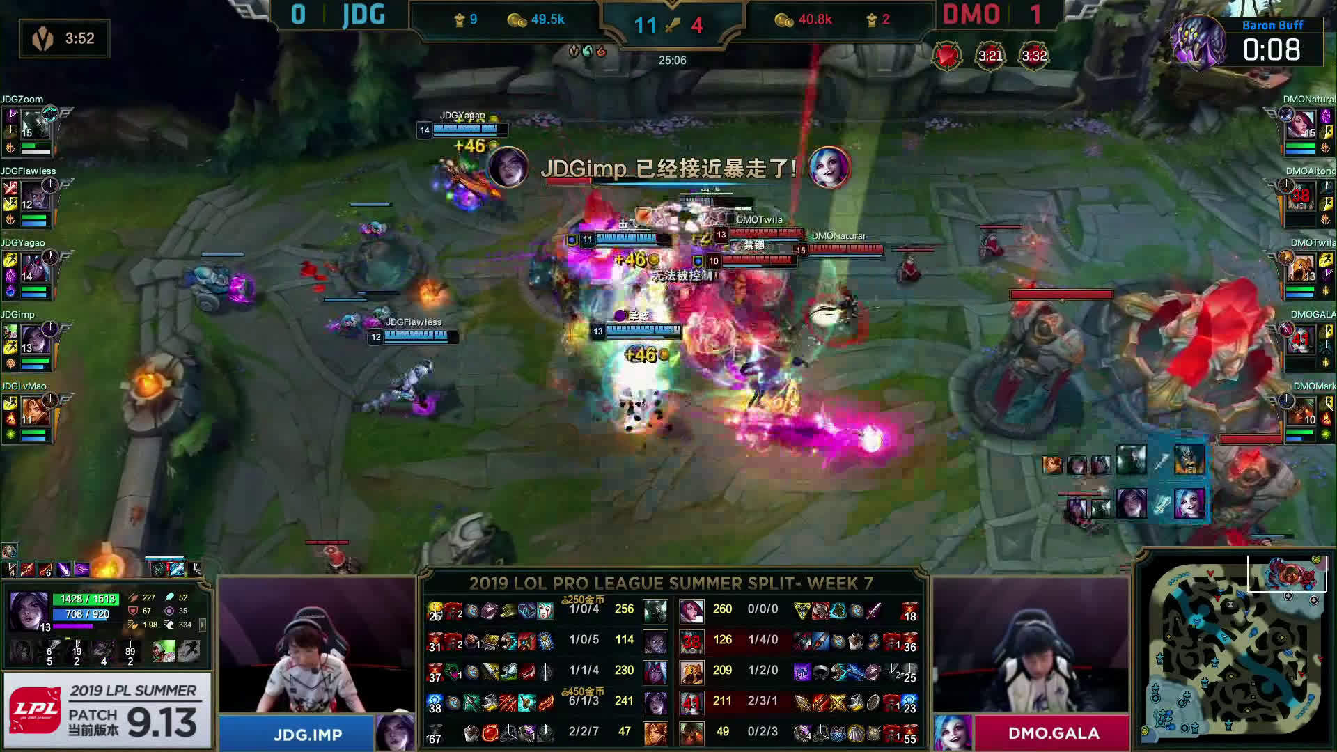 [微博视频] 第三局 JDG强行开男爵,DMO发现后快速赶到,贾克斯、飞机完成收割,DMO再度团灭JDG