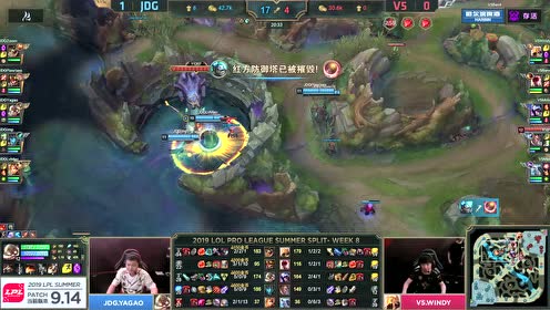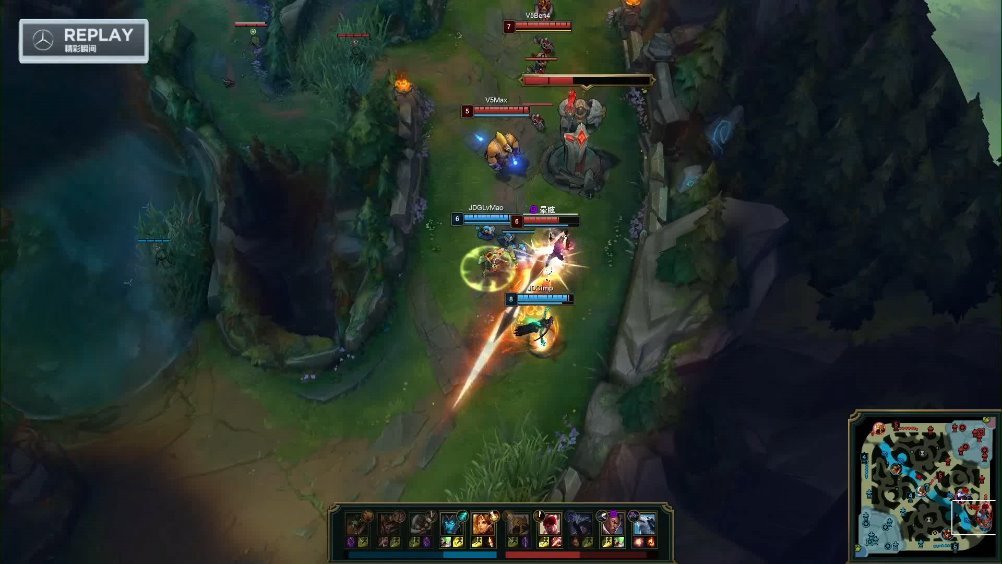 [微博视频] 第一局 JDG中路一波2换4推掉V5基地