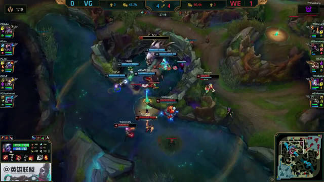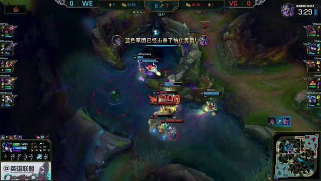 [微博视频] 第一局 WE拿下男爵后飞机持续输出,击杀VG四人后推平基地