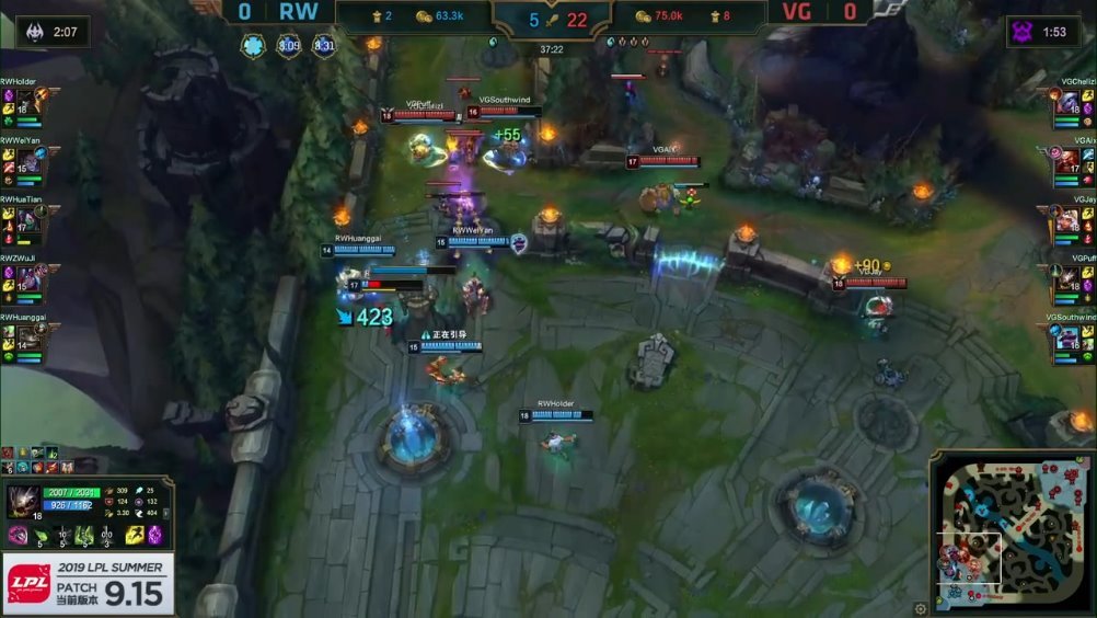 [微博视频] 第一局 VG蹲到RW两人后,拿下大龙。