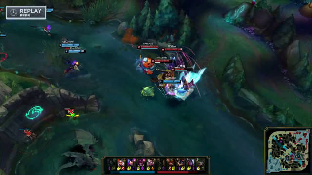 [微博视频] 第一局 妮蔻绕后大招控到三人,BLG打出1换4阻止了FPX大龙BUFF的推进