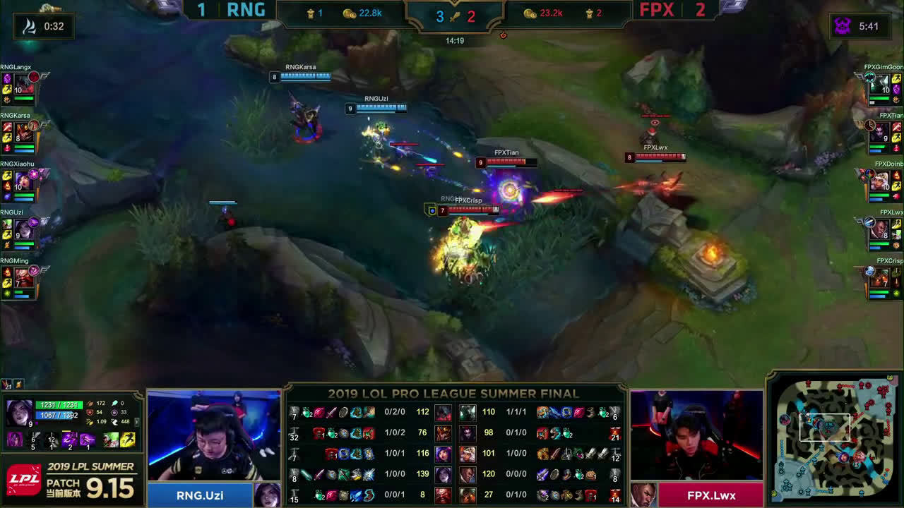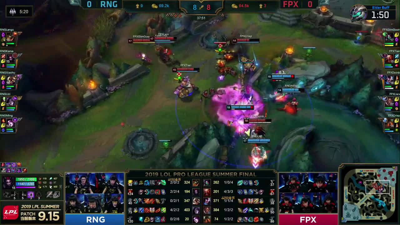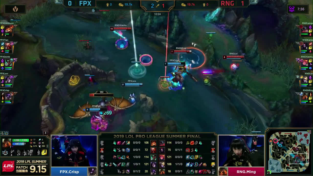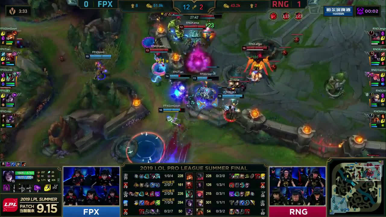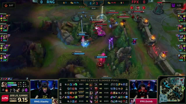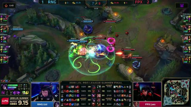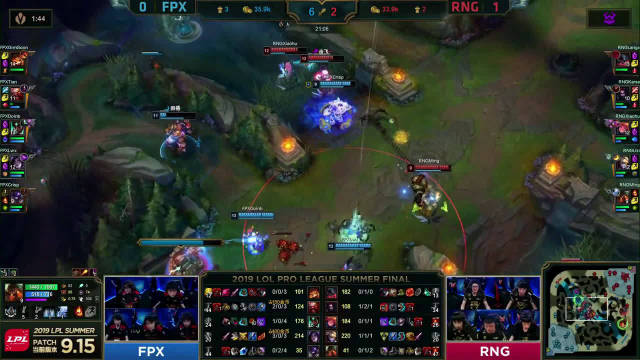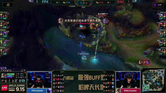 [微博视频] 第四局 RNG先手开团,FPX直接迎战,卢锡安拿下四杀,FPX团灭RNG后赢下比赛。 恭喜FPX拿到2019LPL夏季赛冠军!