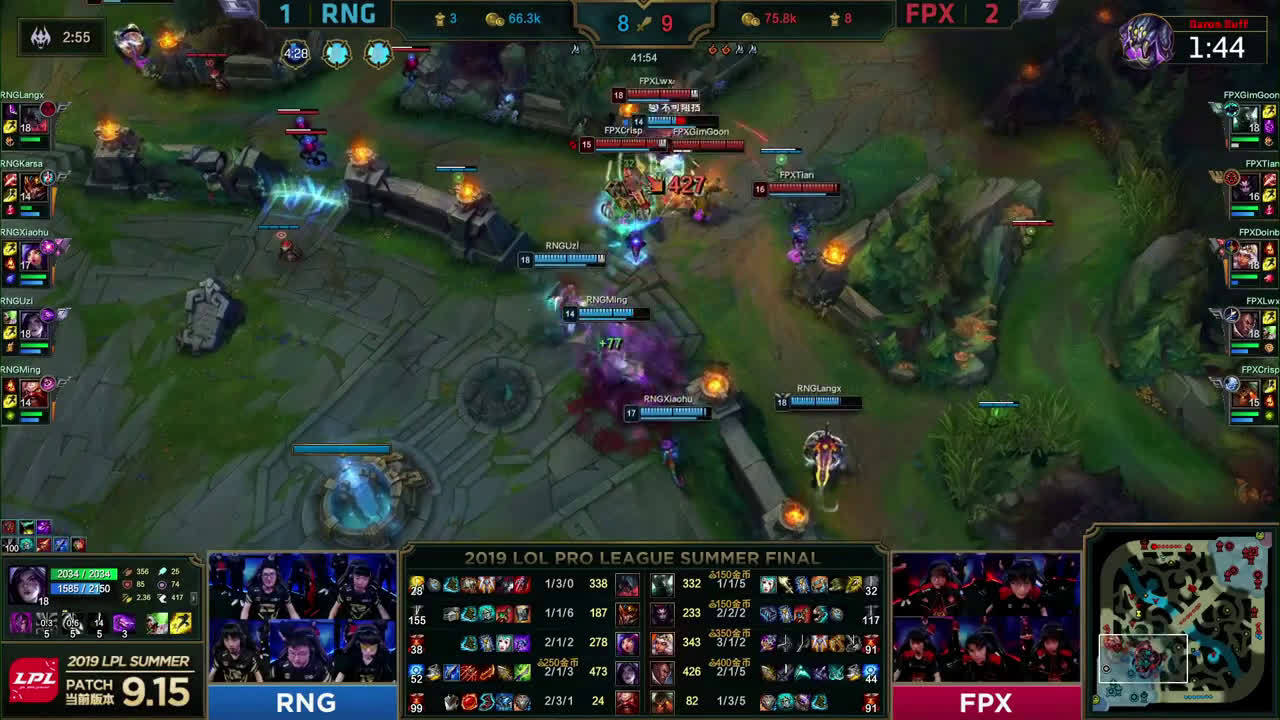 [微博视频] 第二局 卡莎的输出无人可挡!FPX推掉RNG两路水晶。