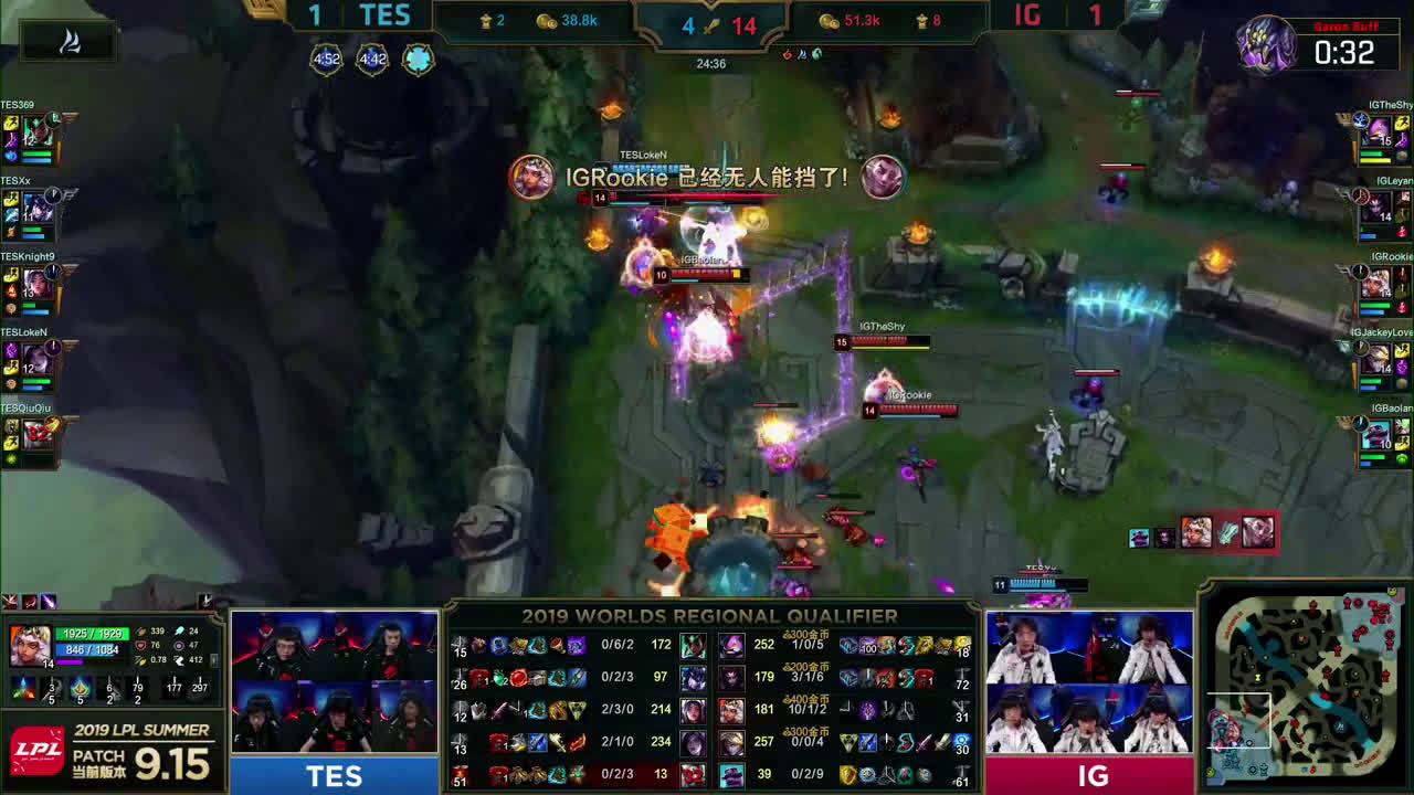 [微博视频] 第三局 IG冲入高地团灭TES,恭喜IG拿到赛点