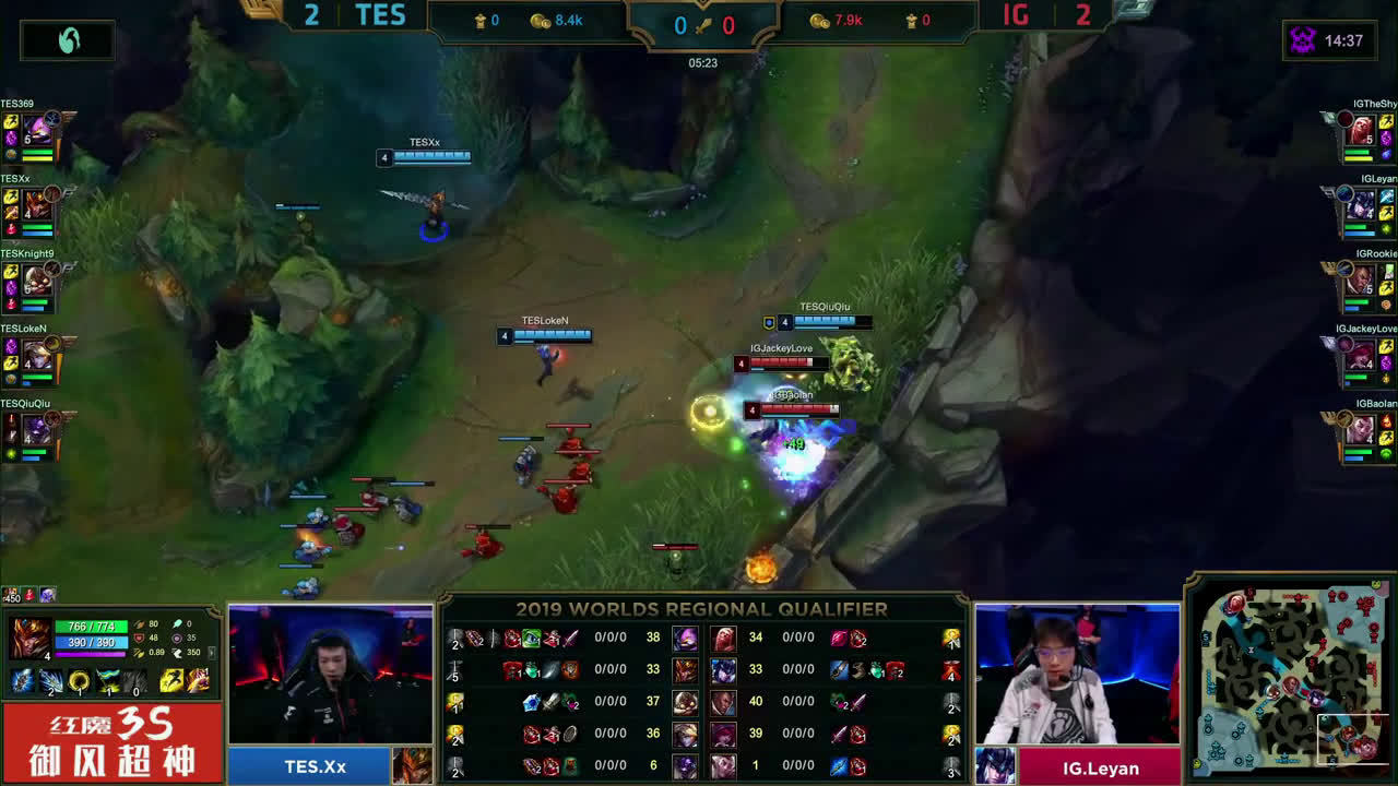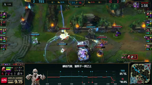 [微博视频] 第二局 小龙处团战,IG零换五团灭TES