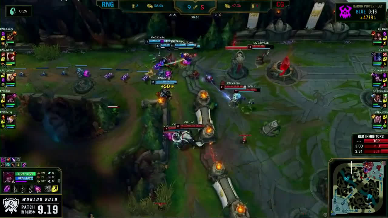 [微博视频] CG在男爵处强开机器人将其秒掉,RNG成功反打完成1换2后拿下男爵