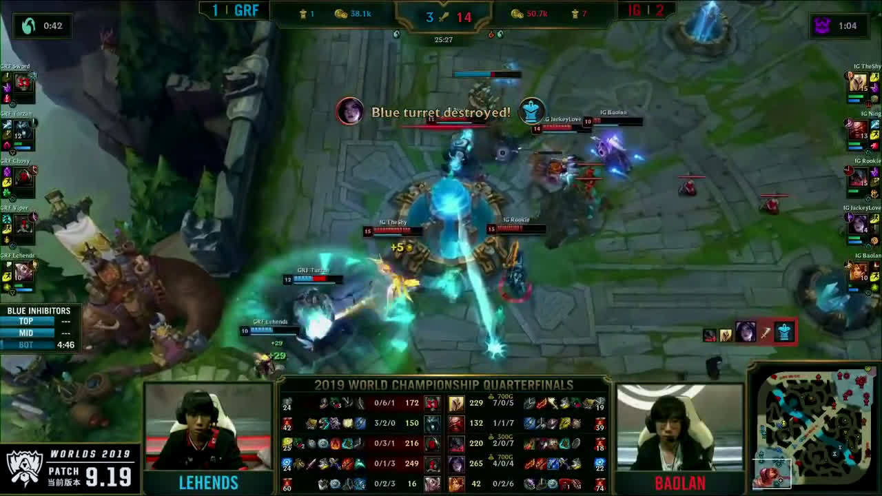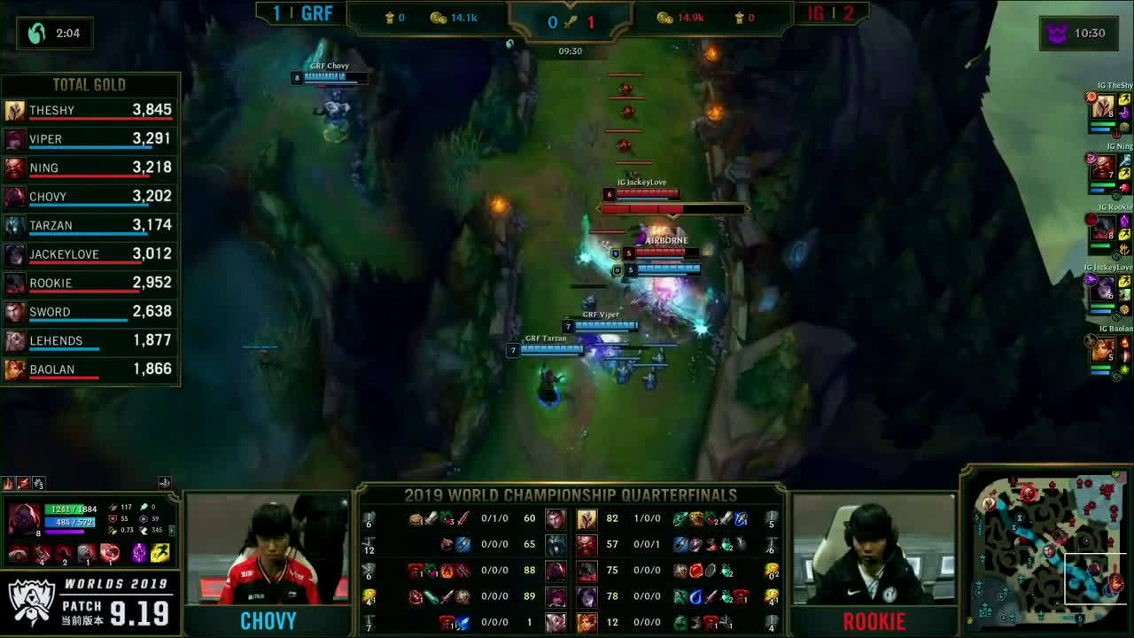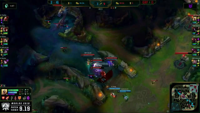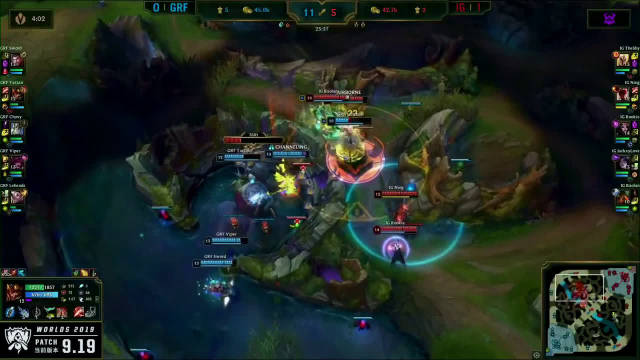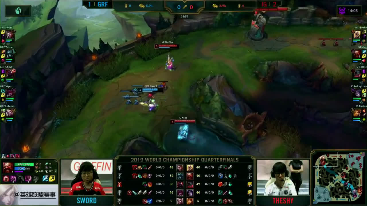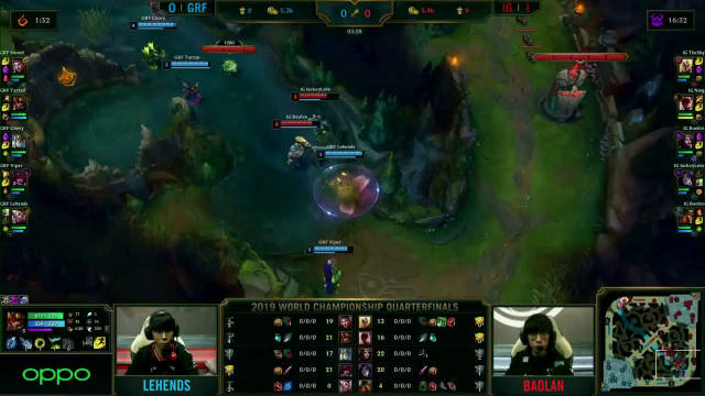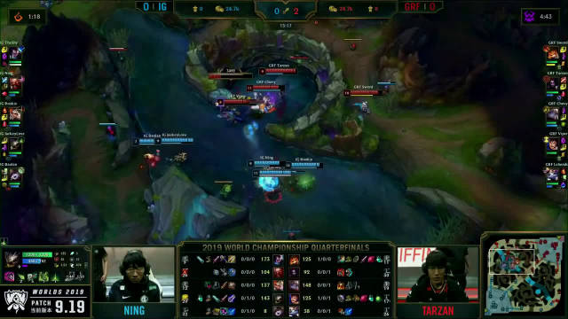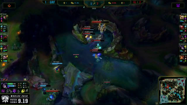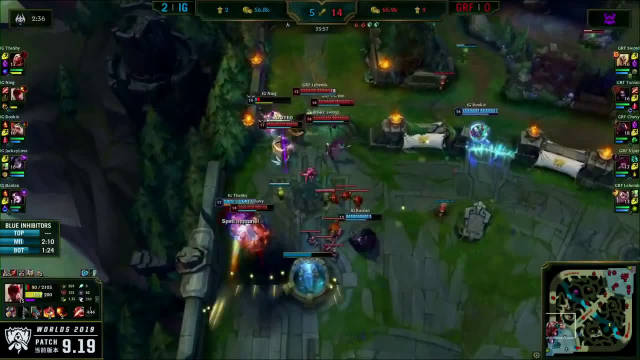 [微博视频] 第一局 IG完美团战发挥,0换5团灭GRF,大嘴拿下三杀
