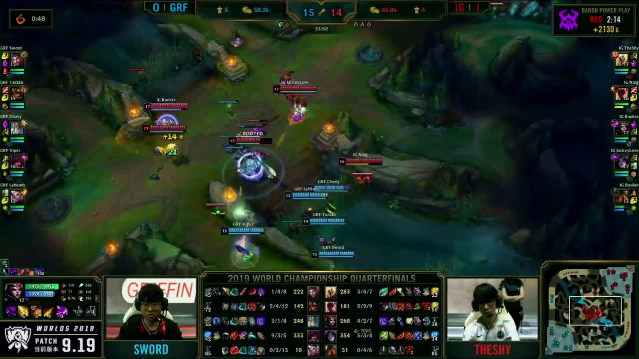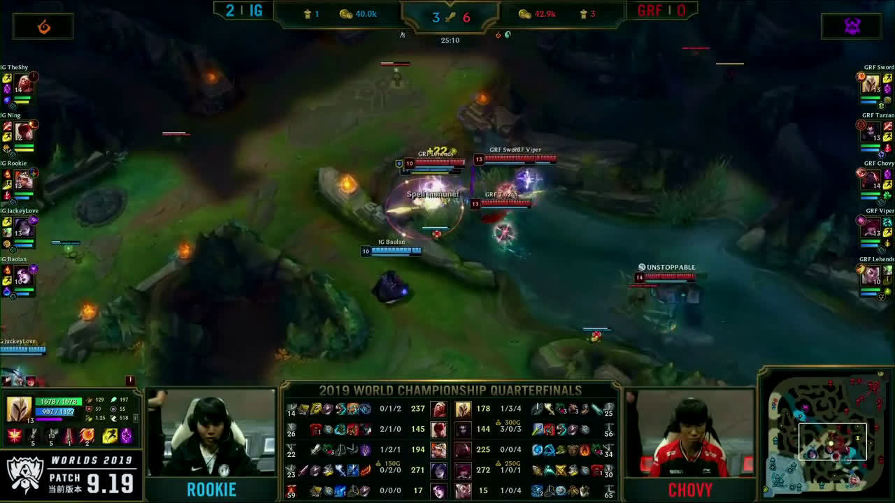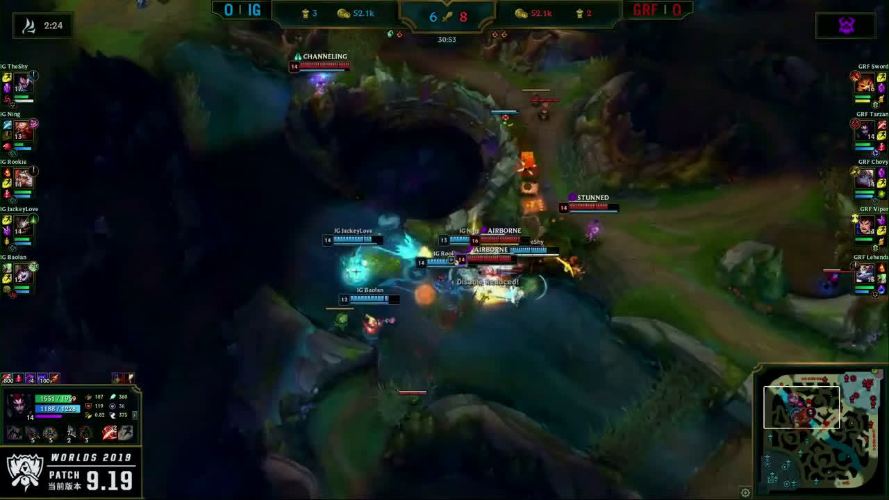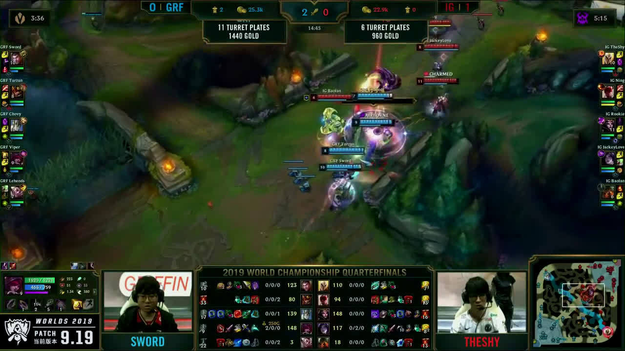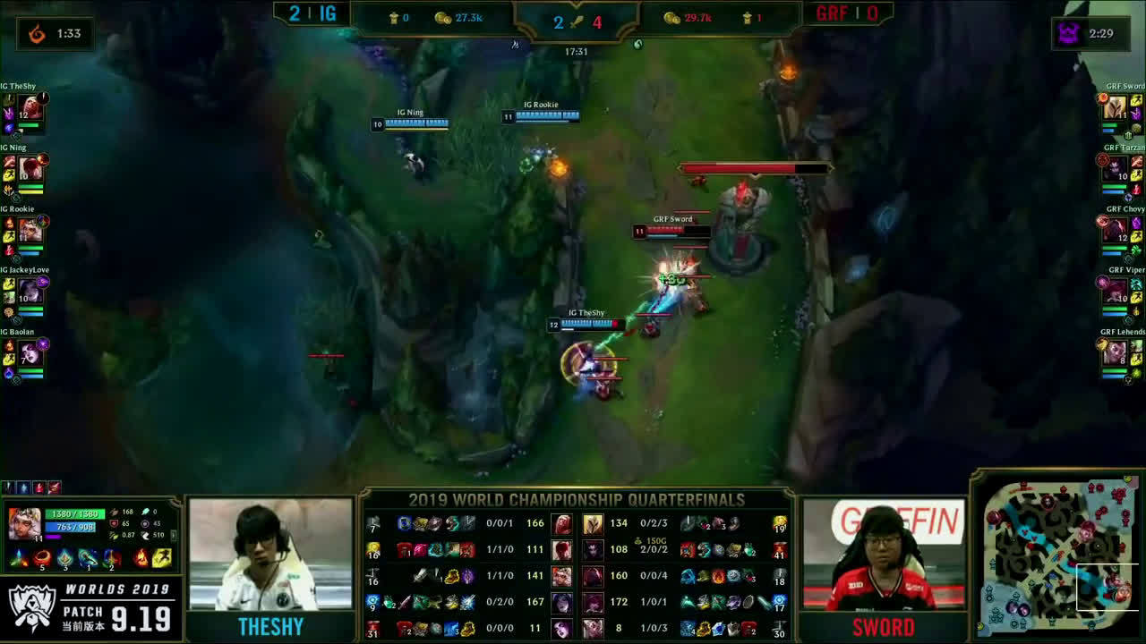 [微博视频] 第一局 IG完美团战发挥,0换5团灭GRF,大嘴拿下三杀