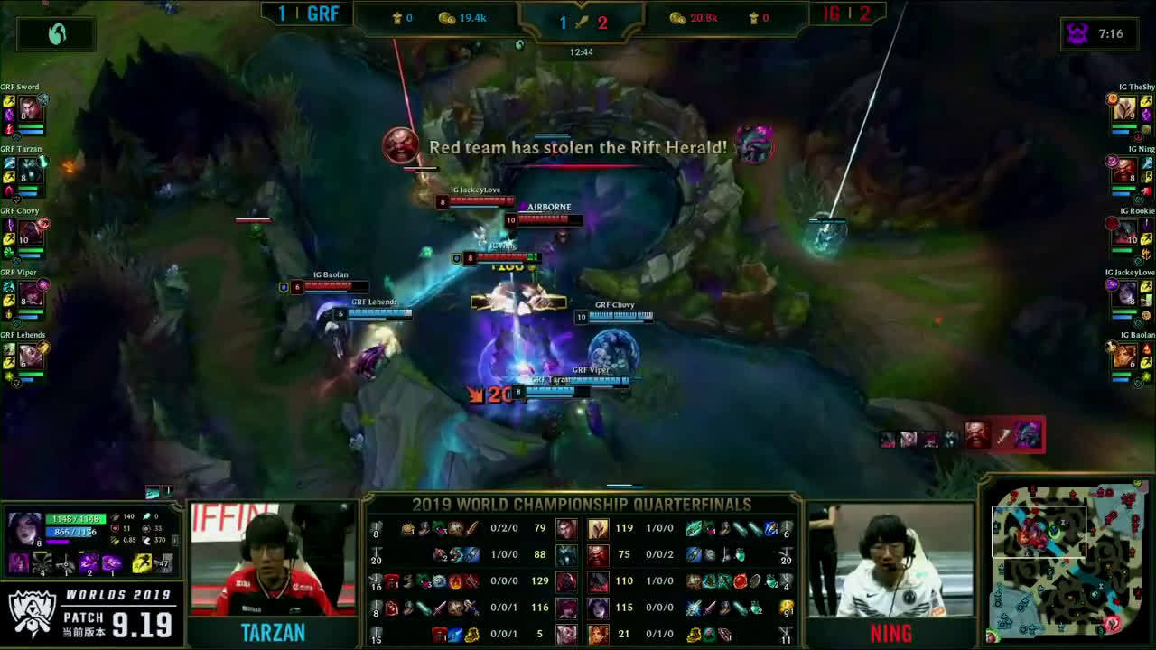 [微博视频] 第四局 双方在峡谷先锋处5V5,IG击杀GRF两人并拿到峡谷先锋