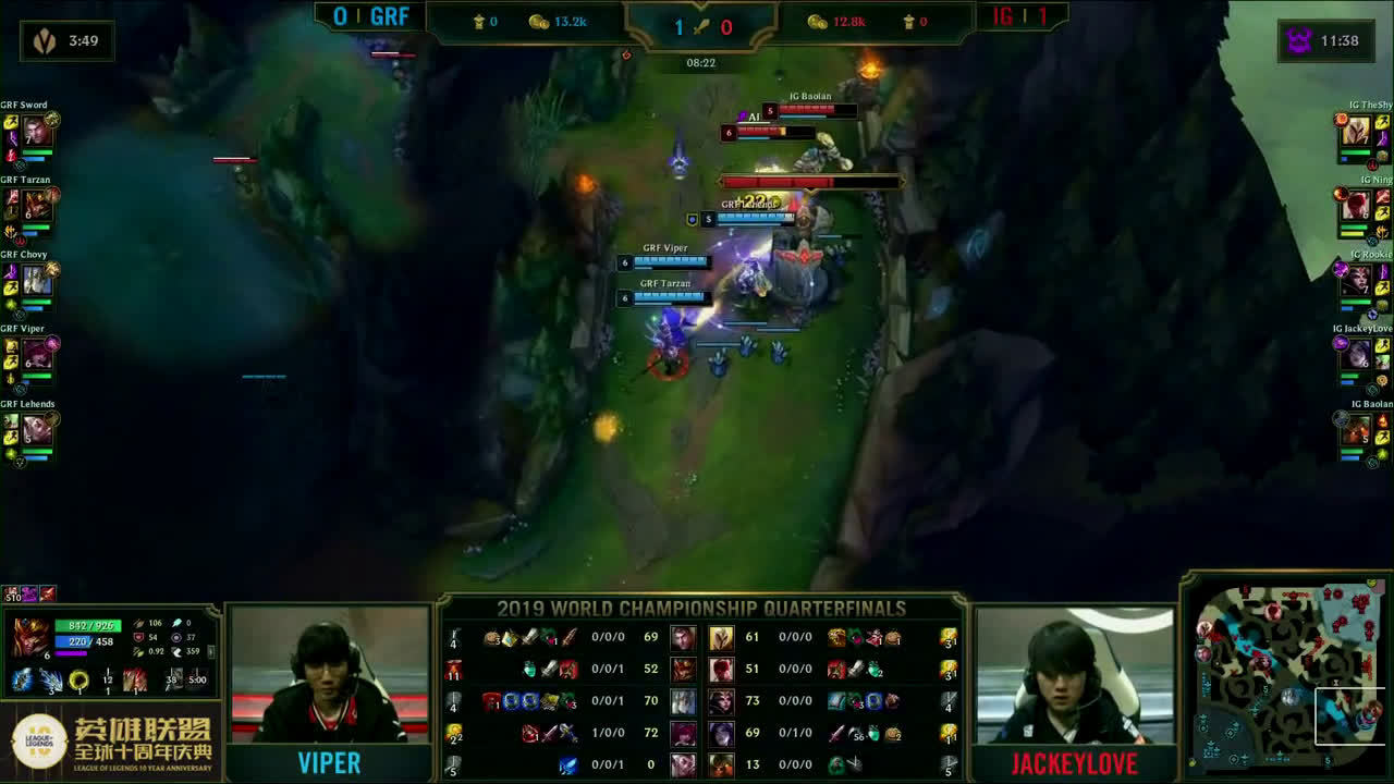[微博视频] 第一局 IG携带远古巨龙BUFF高地团灭GRF赢下比赛