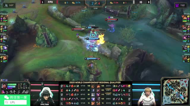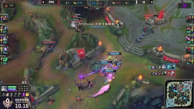 [微博视频] 第二局 下半河道IG先手开团打出FPX一波一换四
