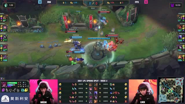 [微博视频] 第一局 FPX先后击杀牛头鳄鱼 RW击杀瑞兹止损