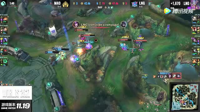 S11世界赛D组:青钢影盲僧双人无影脚,LNG战胜MAD拿下第二胜!