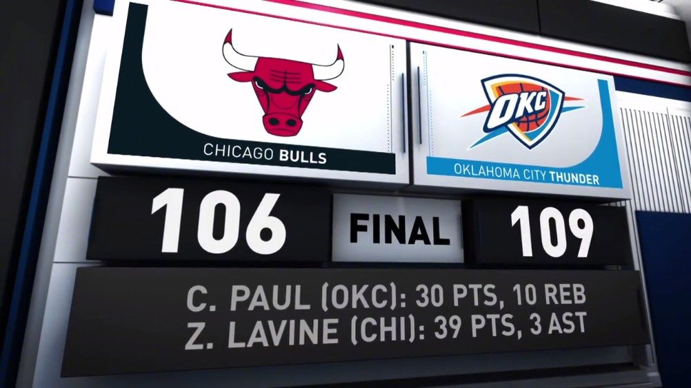 [微博全场集锦] 保罗30+10+8 加里纳利22+6 拉文39分 雷霆26分逆转公牛