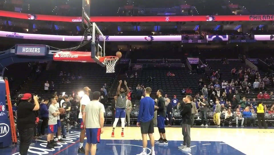 [赛前花絮] 可否拿下胜利?恩比德赛前进行热身备战
