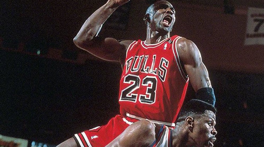 91年季后赛东部第一首轮 乔丹回首掏单臂残暴隔扣2米13尤因