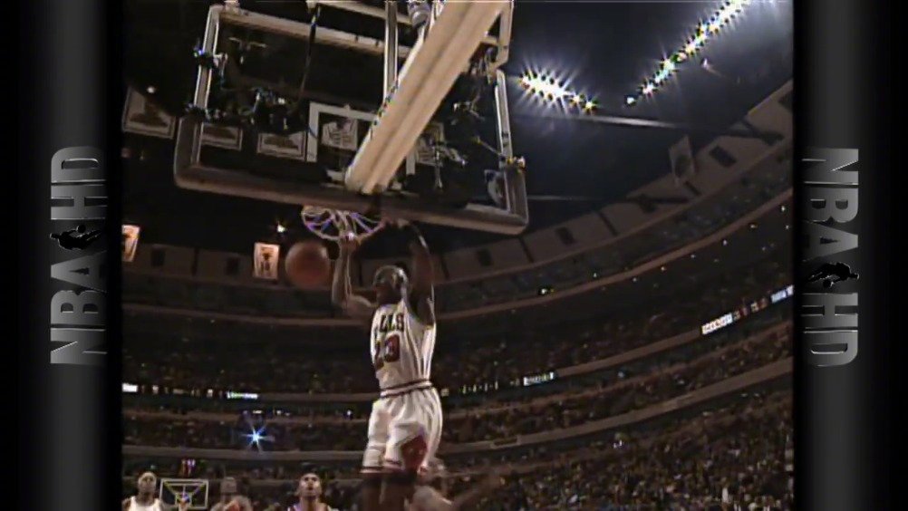 乔丹95-96赛季十佳球-抢断空中漫步拉杆 单手抓球骚气戏耍