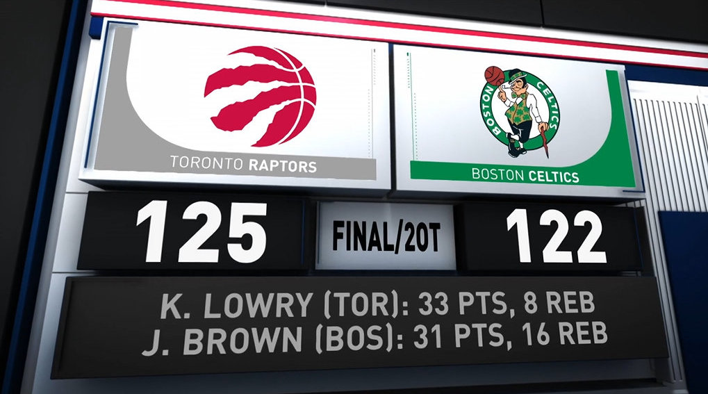 [QQ国语集锦] 洛瑞33+8+6 布朗31+16 猛龙双加时险胜绿军拖进抢七