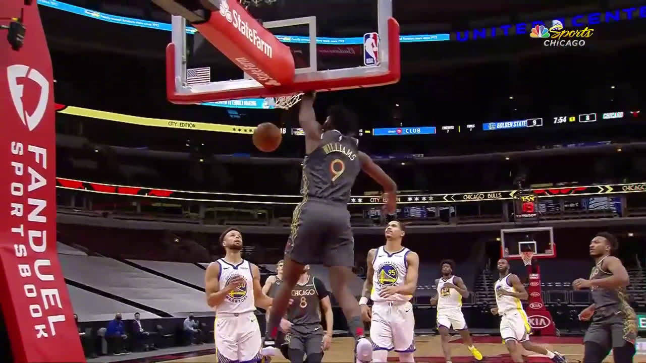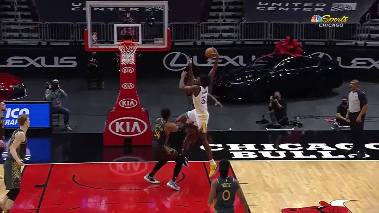 [怀斯曼劈扣] 库里挡拆分球 怀斯曼顺下单臂劈扣