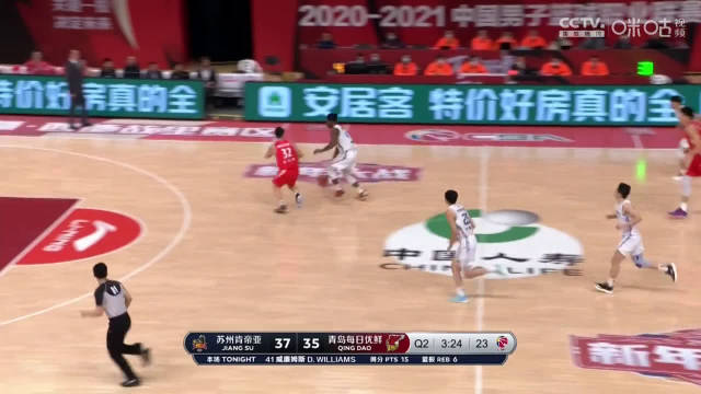 [咪咕全场集锦] 威尔斯30+8 亚当斯22+9 江苏送青岛4连败