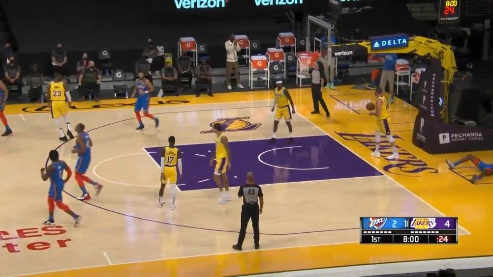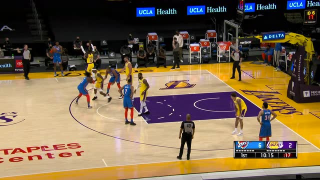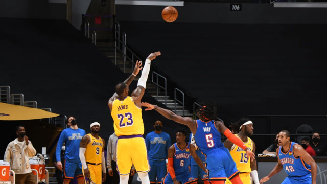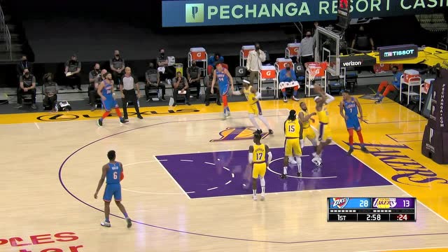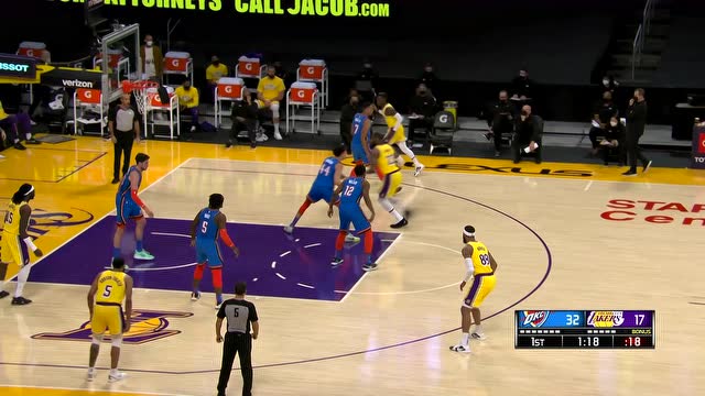 [微博全场集锦] 詹姆斯25+6+7 哈雷尔20分 霍福德25+8+8 湖人险胜雷霆取六连胜
