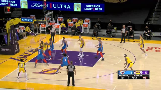 [优酷全场集锦] 詹姆斯25+6+7 哈雷尔20分 霍福德25+8+8 湖人险胜雷霆取六连胜