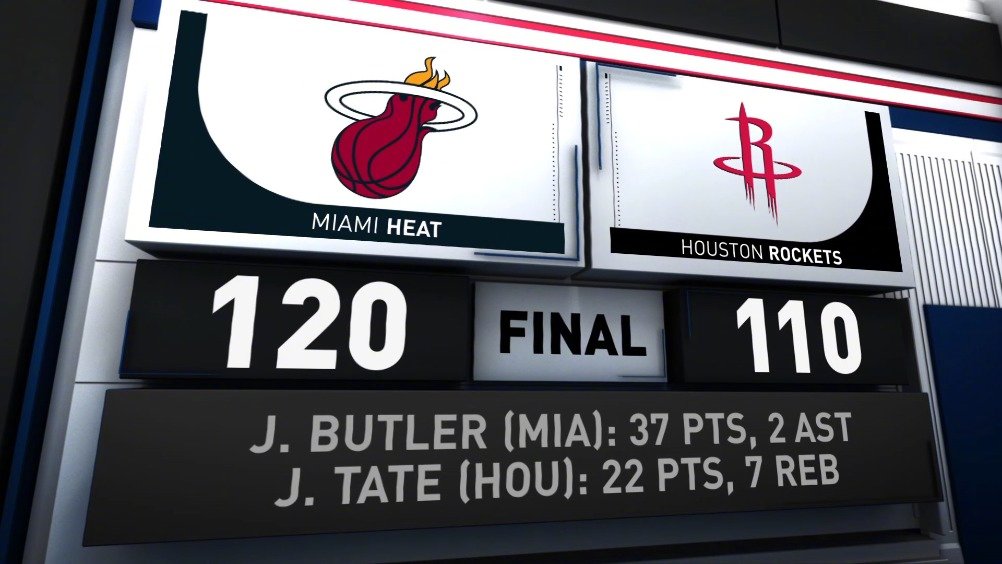 [腾讯原声集锦] 巴特勒37分 希罗16+6+9 热火6人得分上双胜火箭迎5连胜