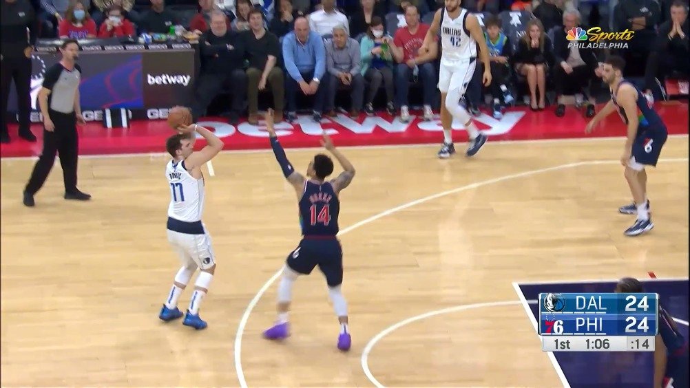 [东契奇三分] 东契奇面对铁林贴防 一通操作后撤步三分稳稳命中