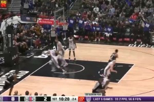 [威少上篮] 乔治助威少拿到快船生涯首个运动战得分 老板饮水压压惊