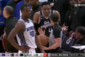 [威少6犯毕业] 加时2威少拼到6犯毕业!之后快船没法得分停在了175!