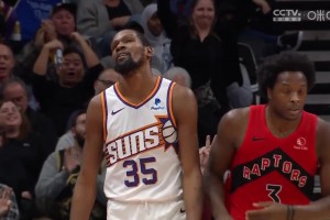 [阿奴诺比三分] 累觉不爱!😂杜兰特一手遮住阿奴诺比,结果对方还是进了三分,杜兰特一脸沮丧!