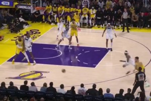 [花絮]人情世故拿捏!詹姆斯扑防撞倒一排椅子 八村不着急攻赶紧扶起
