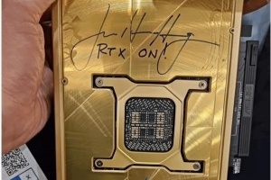 这款显卡不仅以纯金外壳和中东艺术设计惊艳全场,更因搭载 NVIDIA CEO 黄仁勋(Jensen Huang)的亲笔签名与“RTX ON!”题词,成为全球独一份的收藏品。