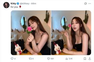 前英文流解说Kitty社媒更新自拍:“这朵花是送给你的🌸~”