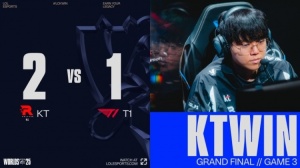 后期多兰鳄鱼身陷囹圄遭融化,KT0换2,Cuzz稳稳拿到大龙,KT经济领先4k。野区多兰绕后先开,Oner佛耶戈没能变身就被击杀,Cuzz蒙多1v3砍翻小吕布,KT拿到炼金龙魂,Cuzz蒙多心之钢来到455层。最终二代大龙团Cuzz屹立不倒,T1遭KT融化,KT一波推平T1基地拿到赛点!