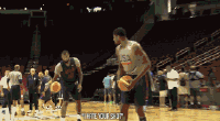 北京时间8月1日,在美国男篮训练之余,队员们也相互模仿投篮动作取乐。