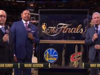 杰克逊:“你知道吗迈克?昨天我和杰夫出去吃饭,这里的人们非常友好,但他们很不高兴我们在比赛中没有展现出对骑士的喜爱(They are extremely nice but upset about, they feeling like we had not show to the Cavs.)。他们对我们解说比赛的方式很失望。我想,你们0比3落后,你们被对手大胜,你们想要我们说啥?你想想,说不定今晚,勇士球迷也在觉得我们偏心骑士队。”