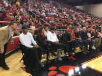 直播吧12月6日讯 勇士队控卫库里在昨天对阵鹈鹕的比赛中,末节最后1分钟一次抢断不慎扭伤了自己的右脚踝。今天,他拄拐与父母一起回母校戴维森学院看比赛。