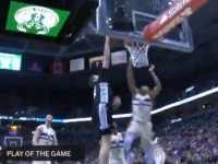 直播吧3月26日讯 马刺今天在客场挑战雄鹿,第四节比赛开始没多久,大加索尔接穆雷传球,直杀篮下,面对字母哥长臂的封盖毫不畏惧,将球扣进篮筐。