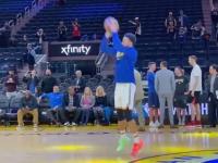 直播吧3月6日讯 北京时间11点30分,勇士队将主场迎战猛龙,届时库里将复出登场。赛前,勇士官方推特发出一段视频,库里热身中连续投进5记Logo三分。