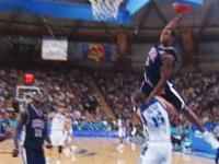 在2000年的悉尼奥运会上,在美国男篮与法国男篮的比赛中,“半人半神”文斯-卡特面对法国中锋维斯完成了“死亡之扣”,他完整地越过了身高2米18的维斯,将球扣进篮筐。